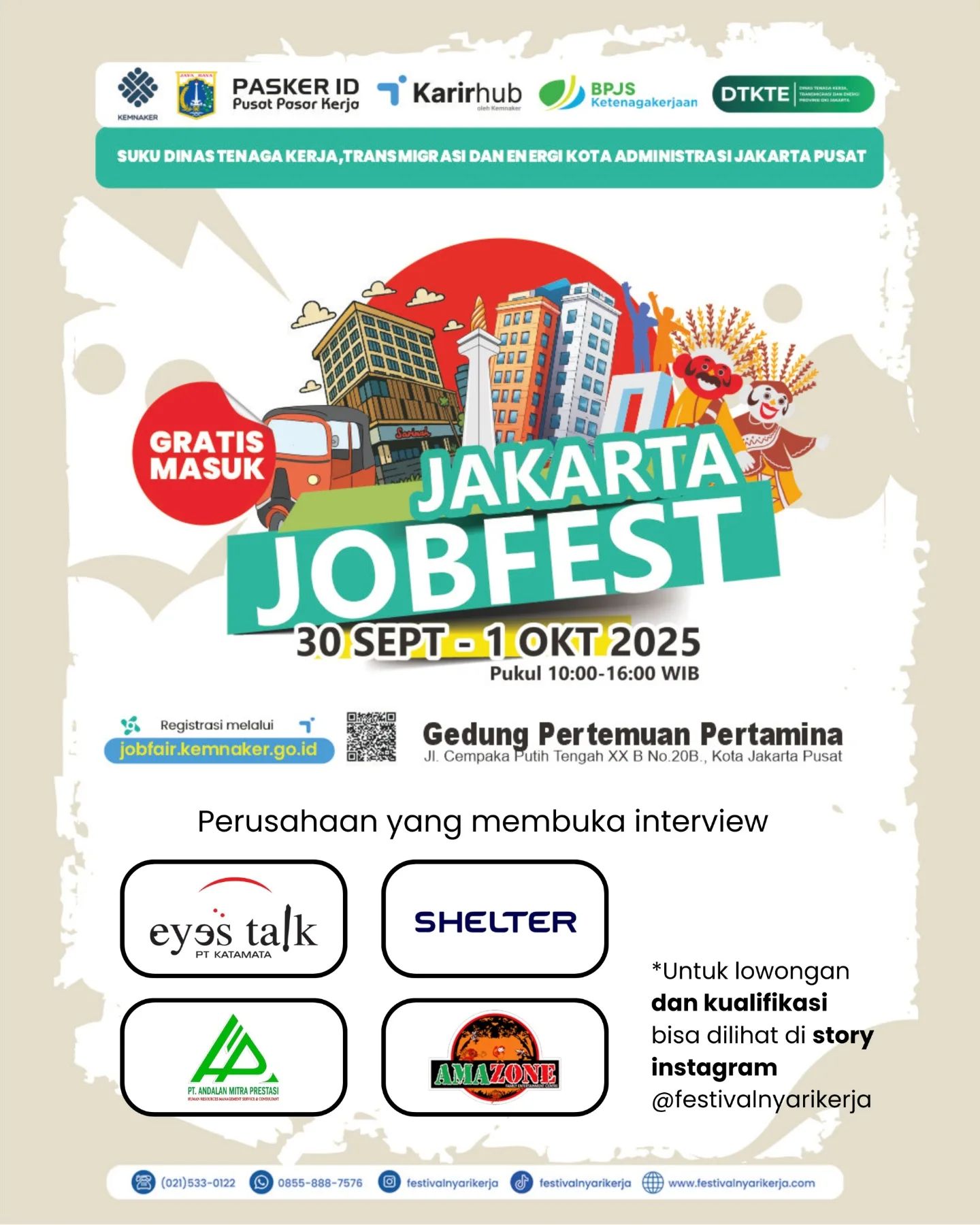 Yuk, bareng-bareng ke Jobfest Jakarta Pusat, bertempat di;