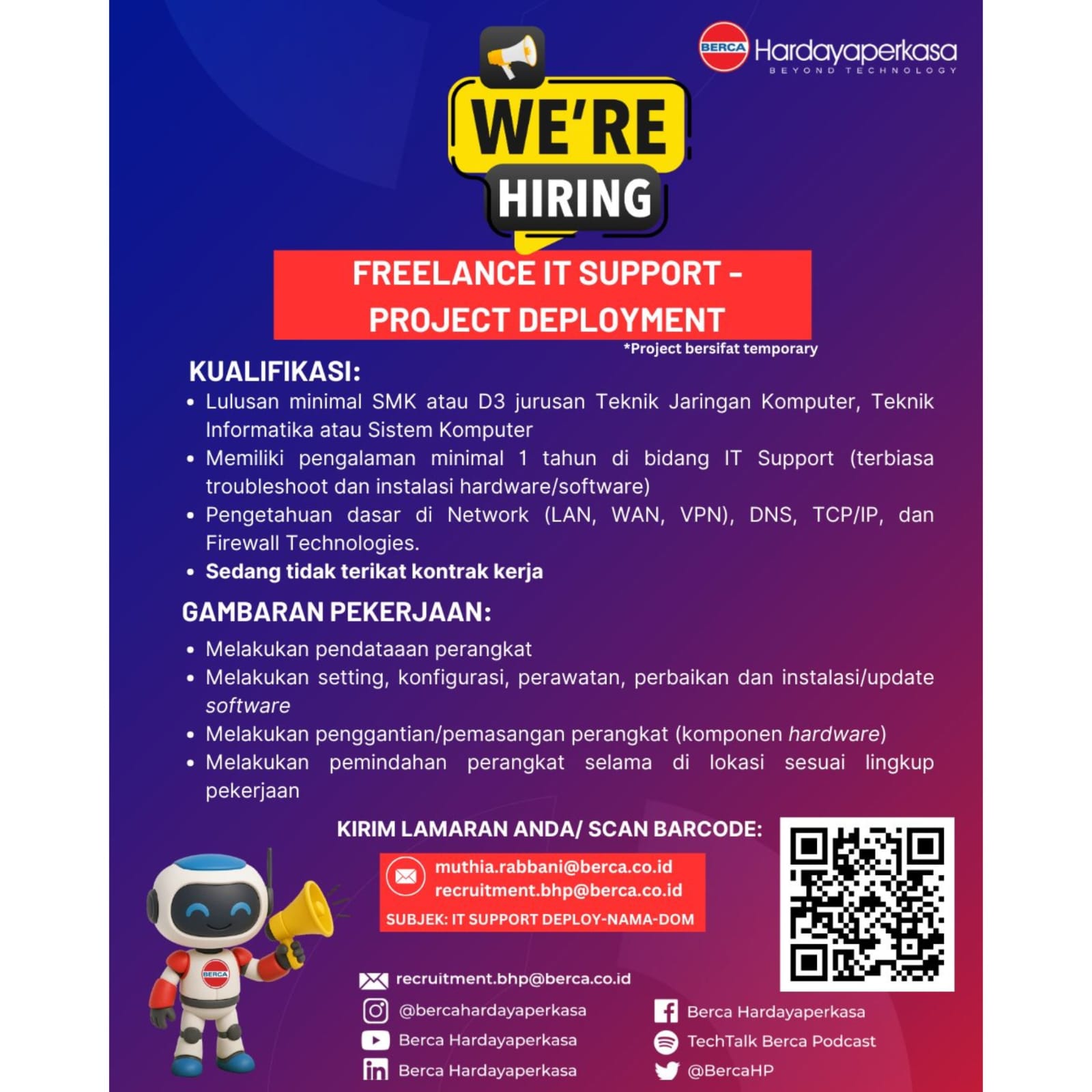 Bagi kalian yang sesuai kualifikasi dan berminat dapat langsung mengirimkan lamaran pada email, link, barcode atau nomor telepon yang tertera. Jangan sampai ketinggalan.