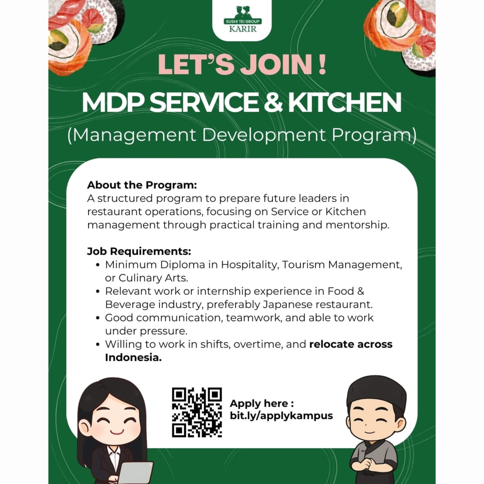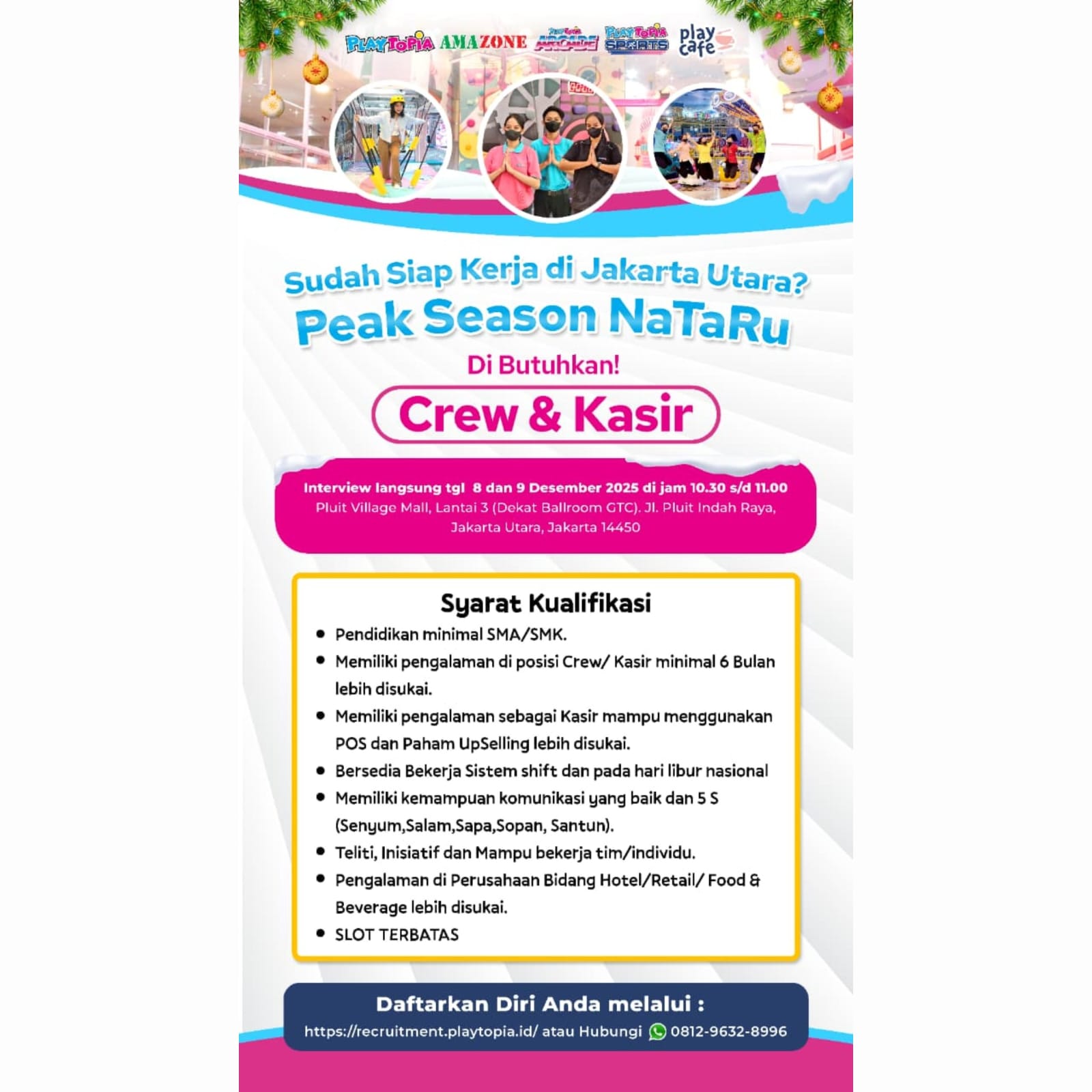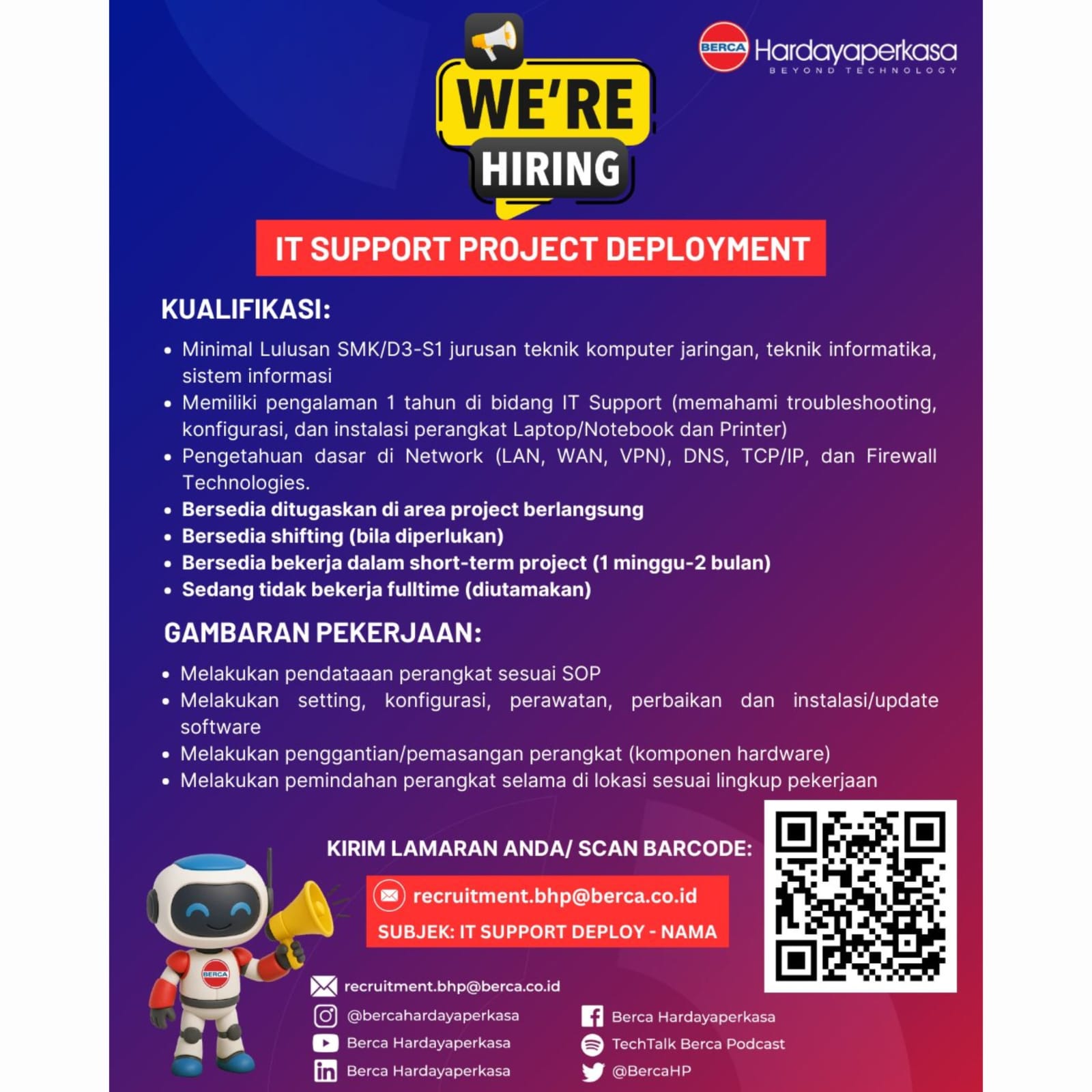 Bagi kalian yang sesuai kualifikasi dan berminat dapat langsung mengirimkan lamaran pada email, link, barcode atau nomor telepon yang tertera.